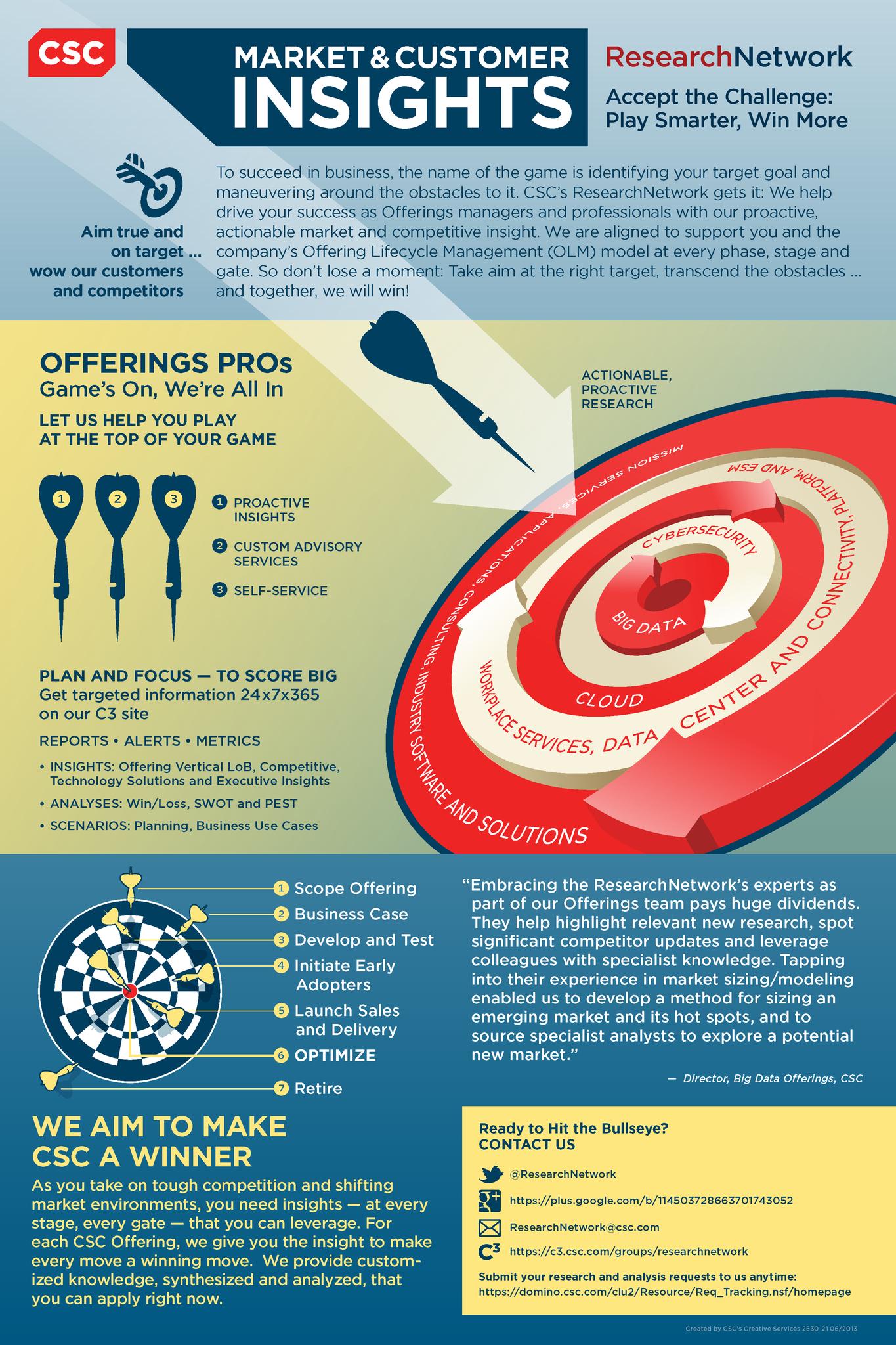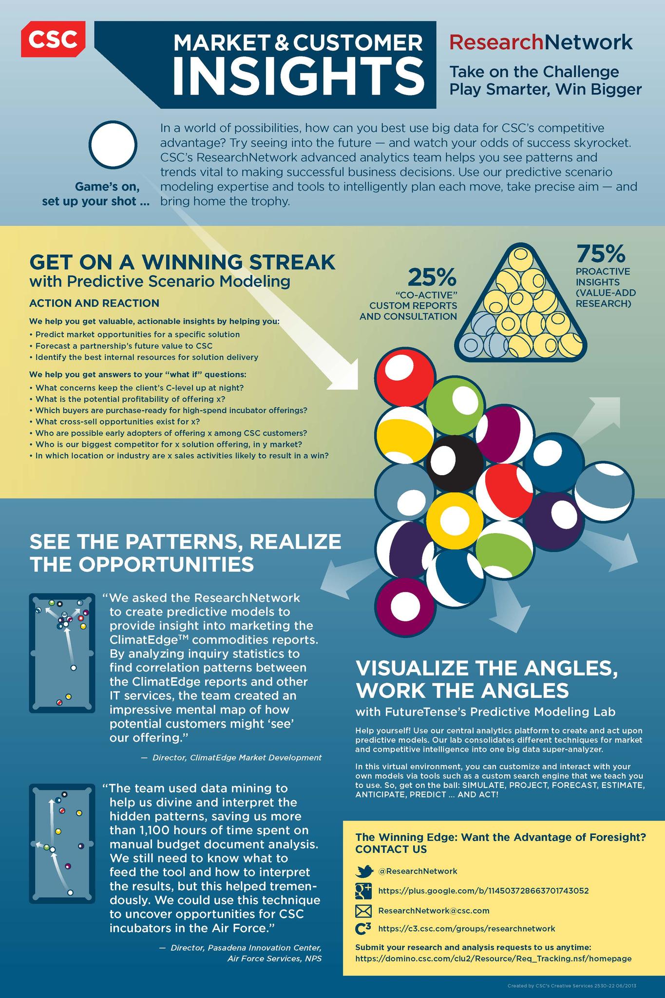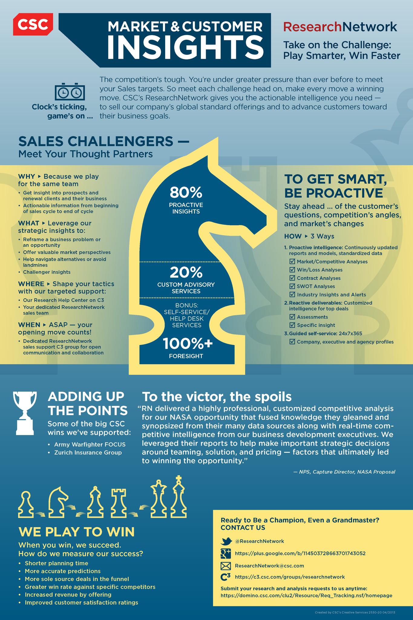 To help a firm's market research group promote its services to business development, proposal and sales teams: Worked with client and graphic designer to create bold, impactful visual stories that contributed to increasing firm's contract win rate